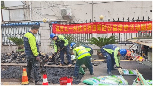 2024年11月13日上午,河南九一環(huán)保科技股份有限公司技術(shù)經(jīng)理張欣偉、工程經(jīng)理王華亭等10余名工程人員,駕駛壓路機、切割機、振動機等工程機械及4噸冷拌瀝青砼進入施工現(xiàn)場。上午10時,瀝青混凝土路面公益維修活動正式開始,經(jīng)過數(shù)小時精準(zhǔn)施工,公益活動圓滿結(jié)束。此次道路維修施工均使用河南九一環(huán)??萍脊煞萦邢薰咀灾餮邪l(fā)生產(chǎn)的環(huán)保型冷拌瀝青砼。