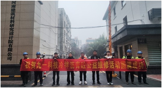 河南省瀝青混凝土行業(yè)協(xié)會到訪河南建材院,了解到紅旗路34號院門口路外瀝青混凝土路面局部塌陷,影響行人及車輛安全,隨即同河南九一環(huán)??萍脊煞萦邢薰緟f(xié)商進行冷拌冷鋪瀝青砼公益維修活動。